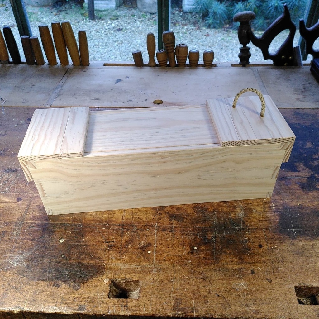 La boîte est issue des chutes de pin des portes de la cabane à copeaux (abri pour l'aspiration de l'atelier, pas encore fini)