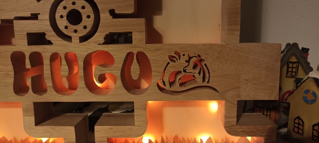 Réalisation dans du tableau dans un panneau de hêtre, fond dans du CP de peuplier de 5mm épaisseur, éclairage ruban adhésif leds avec une télécommande.