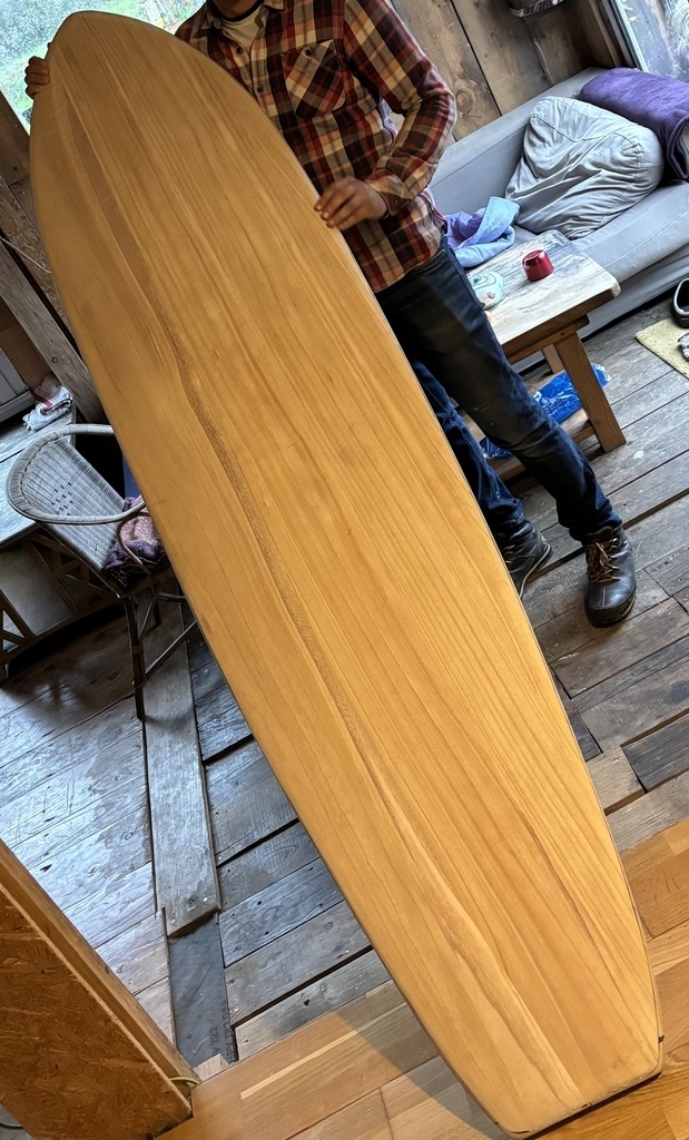 une nouvelle planche de surf, cette fois-ci en collaboratif avec Mouss, en paulownia 8 mm , taille 8'0" x 22", plans dispo sur l'airdubois,