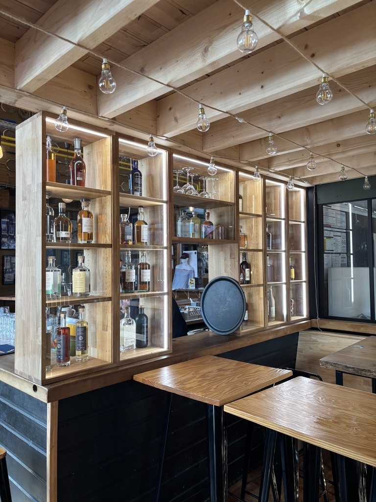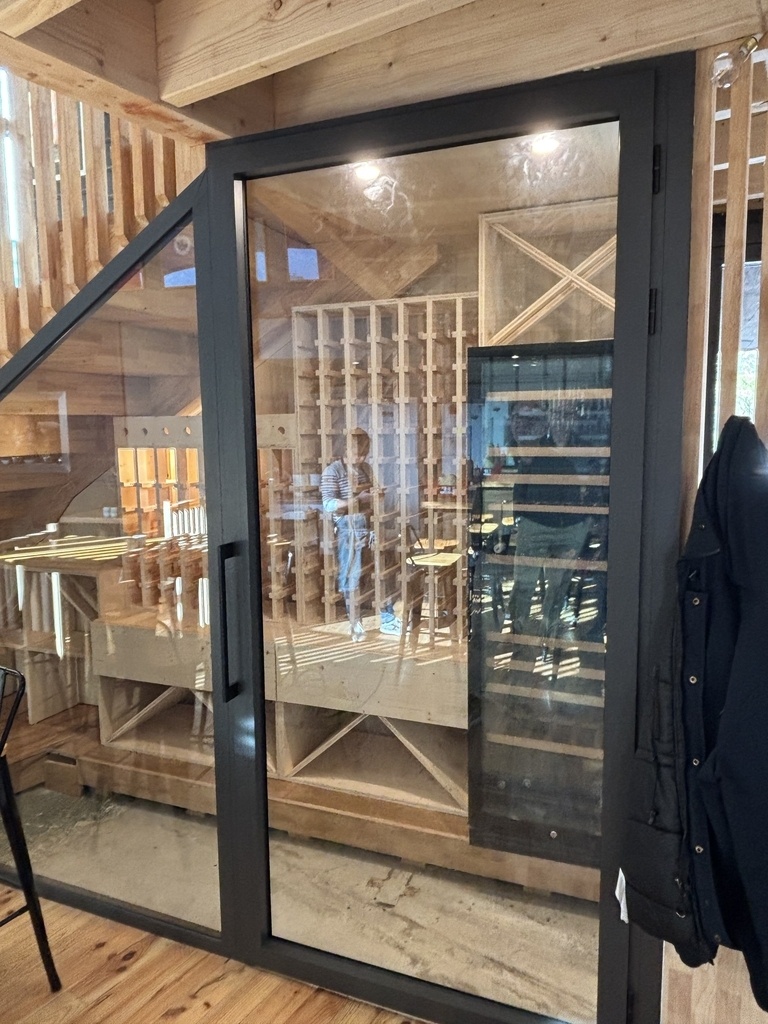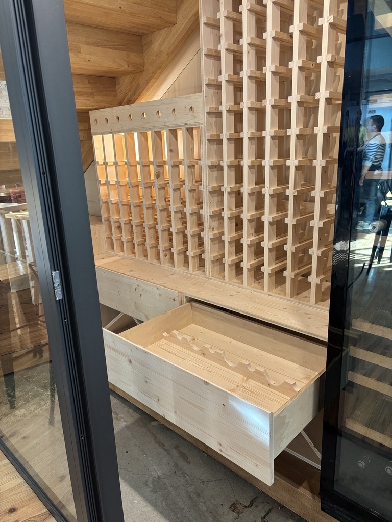Comme il restait de la place sous l'escalier nous avons réalisé une cave a vin en épicéa 3plis