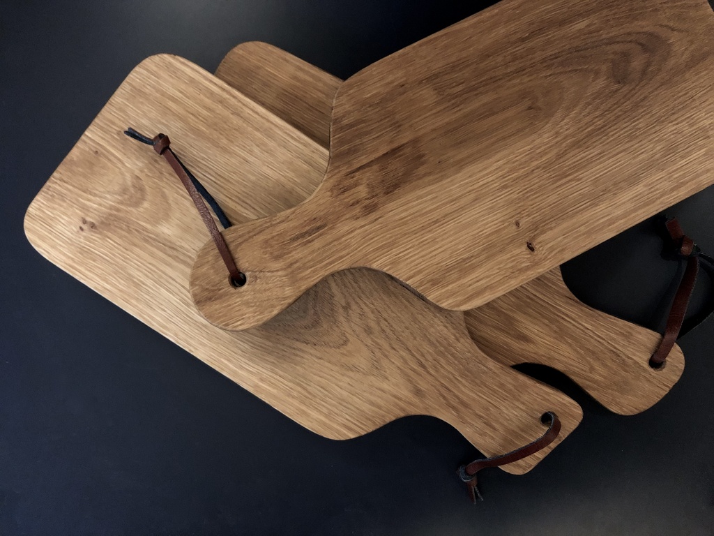 Réalisation d'une série de planches à découper à partir de chutes de chêne massif.