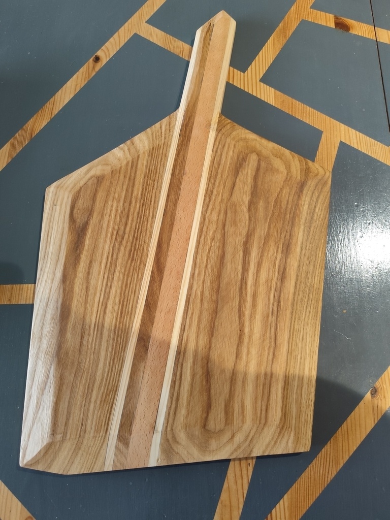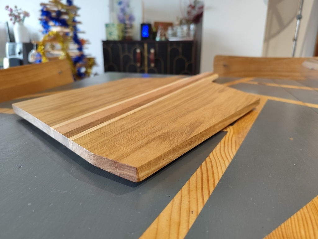 Finition huile de paraffine contact alimentaire des frères Nordin, je à la base je voulais rien mettre mais j'ai finalement voulu faire ressortir les veines et contrastes du bois.