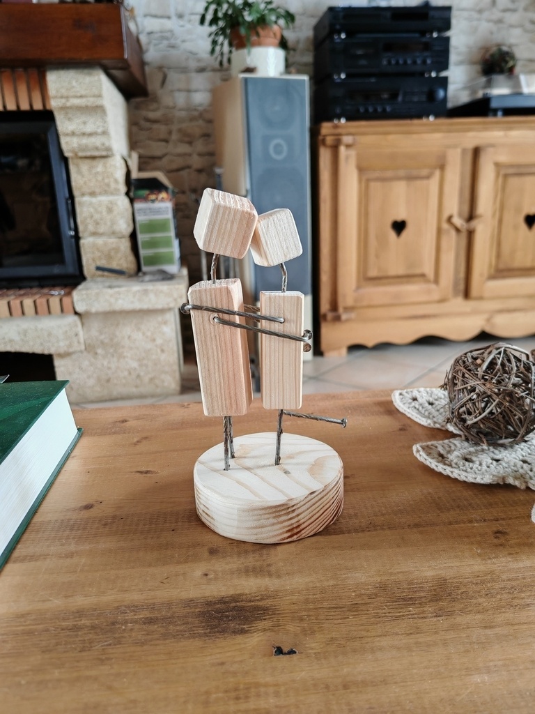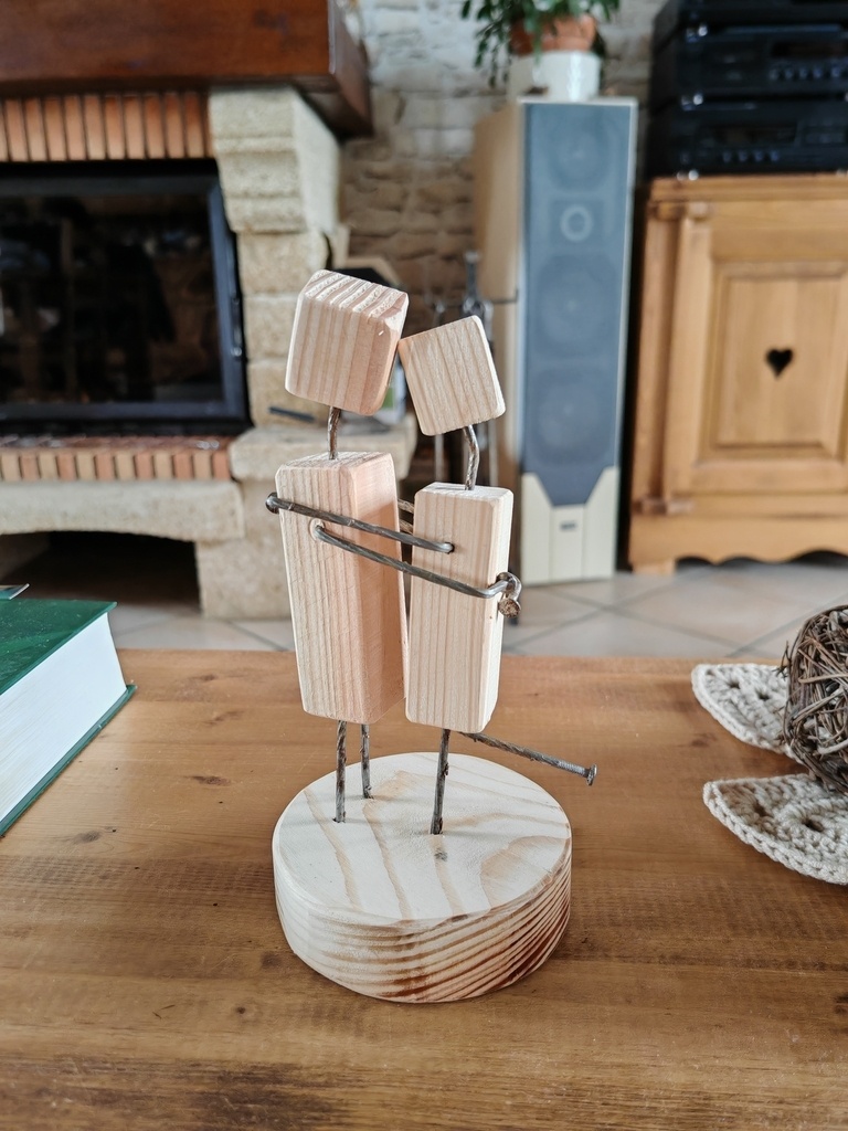 bonjour , voici une fabrication sans prétention avec des clous de palette est des restants de bois , j'ai fait quelques couples enlacer pour des amies et un pour moi , facile a faire et ça fait rigolé c'est le principale , bonne journée