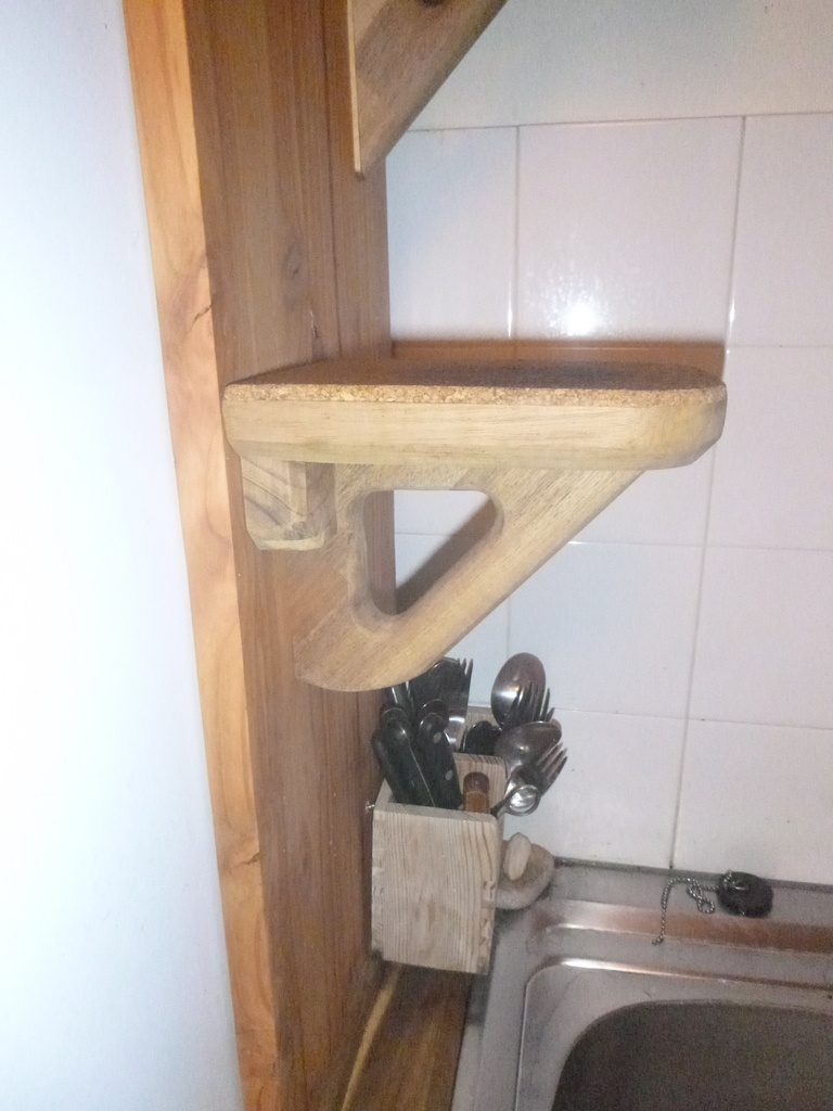 Conception initiale en tenant compte de la petitesse de ladite cuisine, de la proximité du point d’eau, et de pousser en hauteur pour profiter de la gravité, et pouvoir placer un réceptacle (bouteille d’eau, pot de fermentation « kéfir »…)