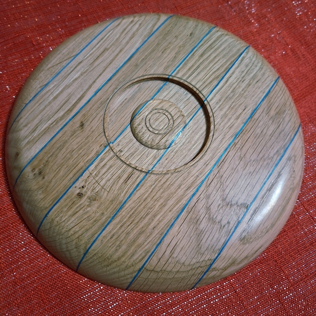 Une assiette, avec les restes d'une cuisine en chêne (collés au hasard) et des filets Gauthey.