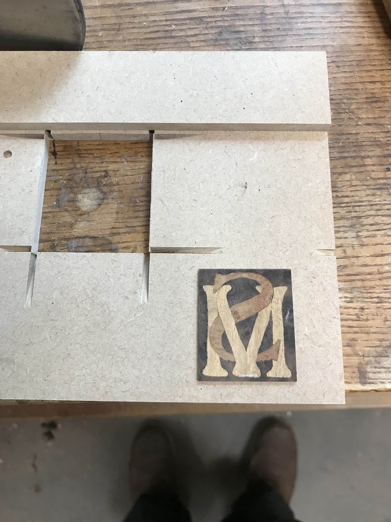 Des initiales en marqueterie et une entrée a filet sur mesure.