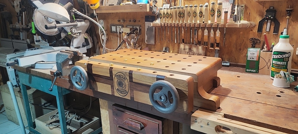 J ai utiliser un morceau de Cormier que l on m a donné il y a quelques années, les inserts sur le mors mobile sont en noyer.