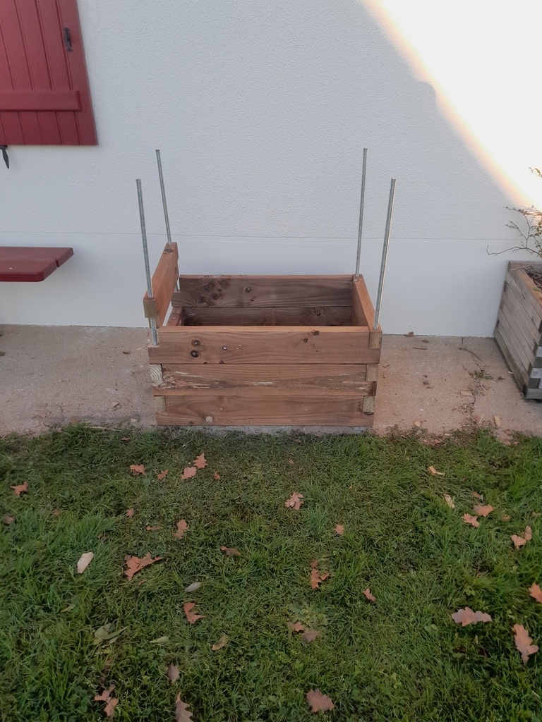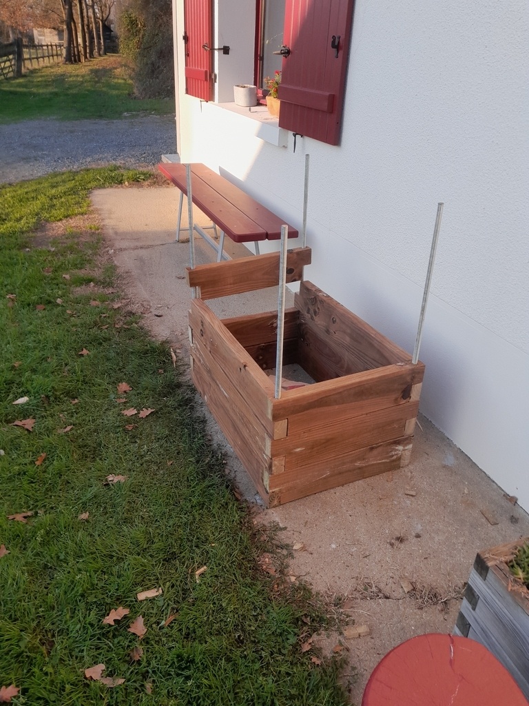 Création en ossature bois 45×145 classe 4. Assemblage mi-bois et boulonné sur chaque angle.
