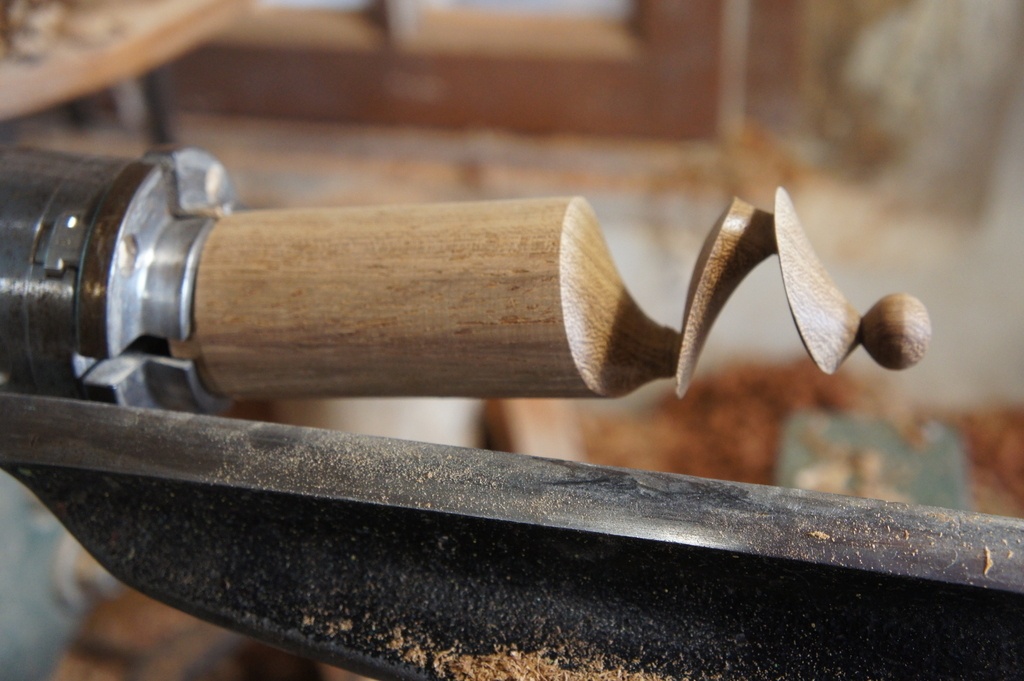 Je tourne avec un fond noir quand je tourne en excentrique car cela limite un peu l'effet stromboscopique et permet de mieux visualiser les contours de la pièce..