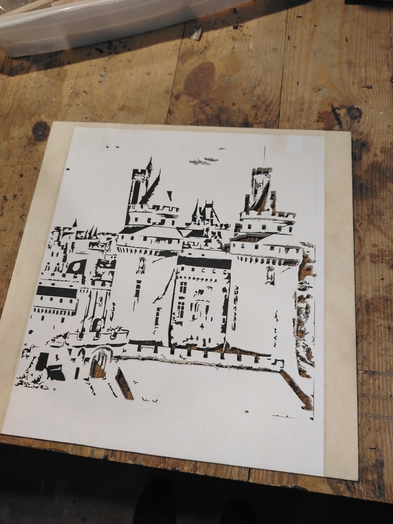 l'Office de tourisme de Pierrefonds m'offre la possibilité d'exposer mes créations pendant un mois. Je trouvais donc sympa l'idée de mettre le château de la ville en valeur à travers un chantournage.