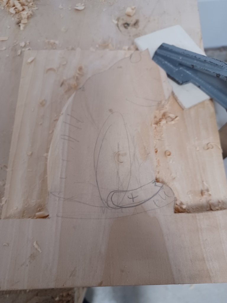 Un premier travail, pour dégager la forme, m'a permis de découvrir et de me familiariser avec les différentes gouges.
