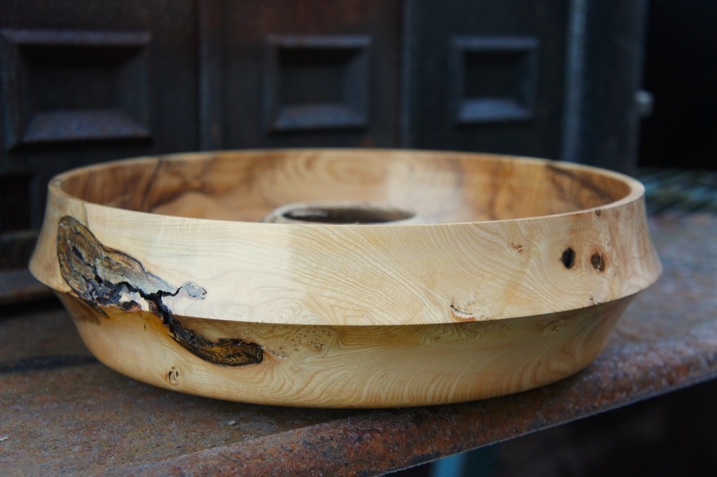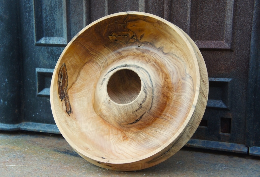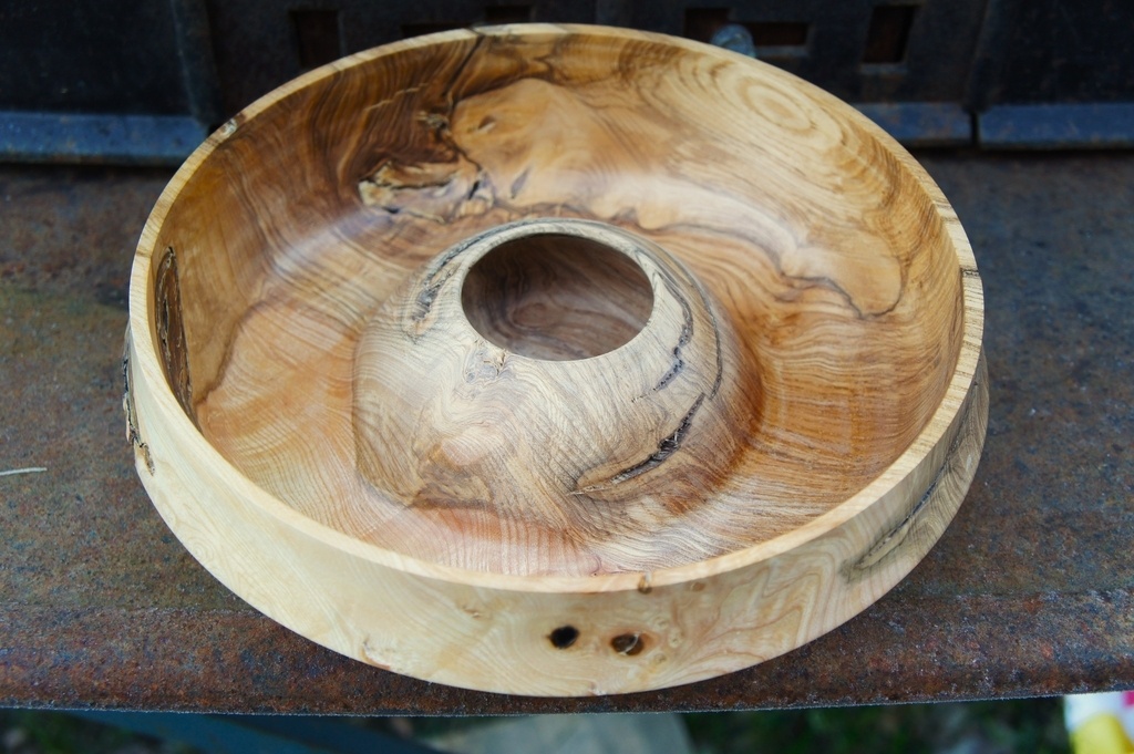 Bonjour, un grand range bazar en frêne. Diamètre 30 cm, finition cire de Carnauba. Une vraie chienlit à tourner au regard des défauts, du balourd et de la dureté. Je n'ai guère pu dépasser les 800 tours minutes, et ça se ressent sur la propreté des coups d'outils.