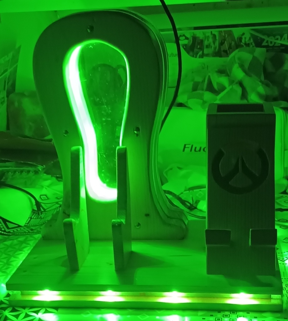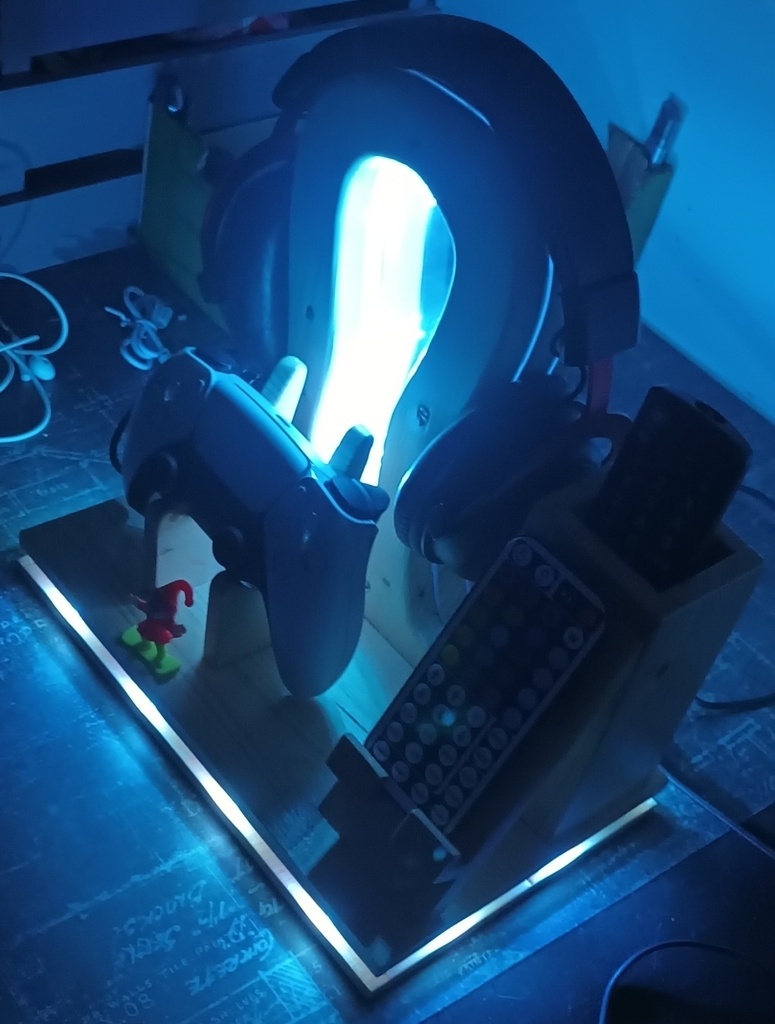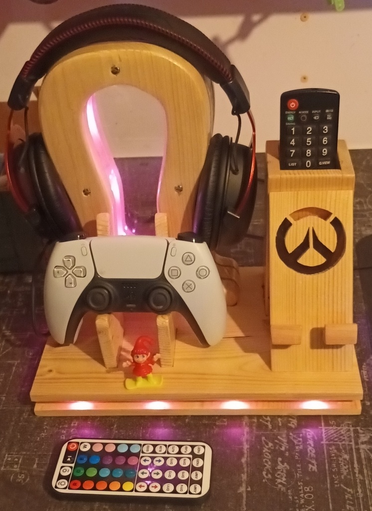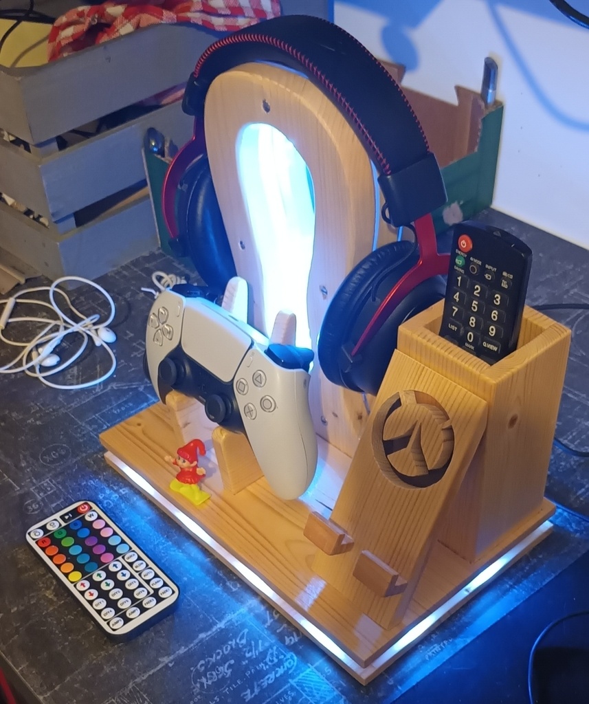 Suite à la demande de mon fils, réalisation d'un support de casque, manette, téléphone et télécommande TV.