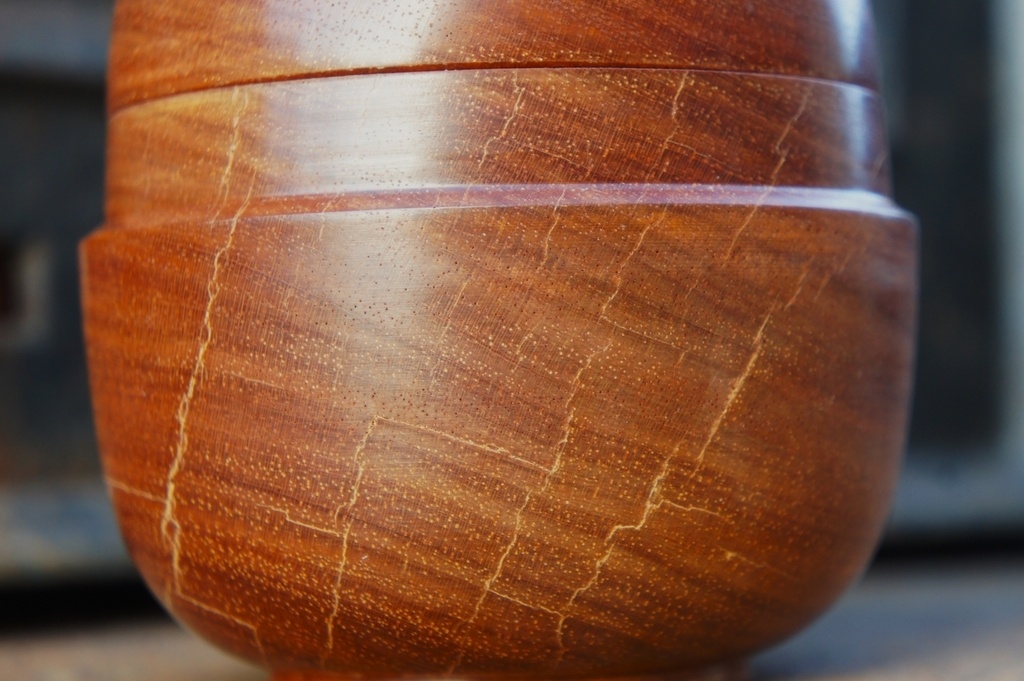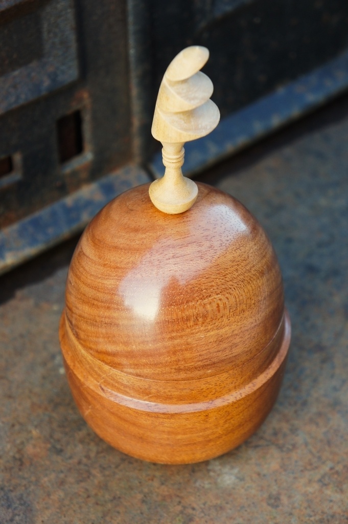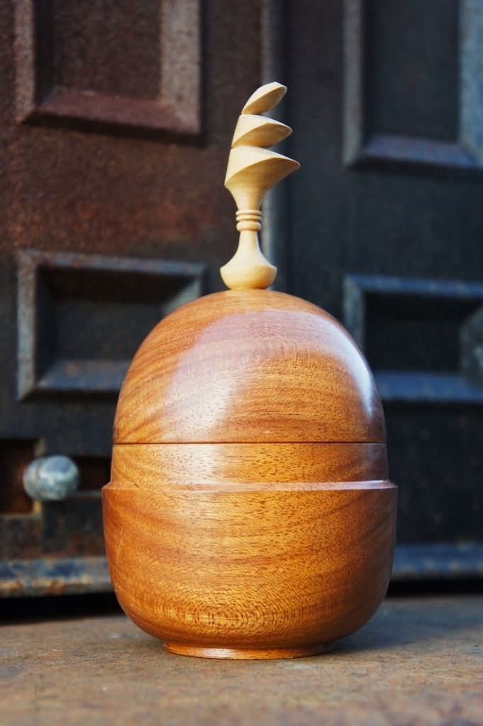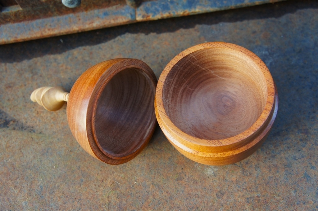 Bonjour, une petite boite en niangon, avec fleuron décoiffé en tilleul. Pour les couvercles de ce genre de boite, on creuse d'abord, on profile l'extérieur ensuite. Le corps de la boite servant d'emprunt au couvercle, ou avec une prise en extension. J'ai choisi une prise en extension vu les fentes de la boite, la feuillure étant sur le couvercle. Rappel : Faites très attention aux bois fendus et fissurés. Le moindre accrocs, ça explose.