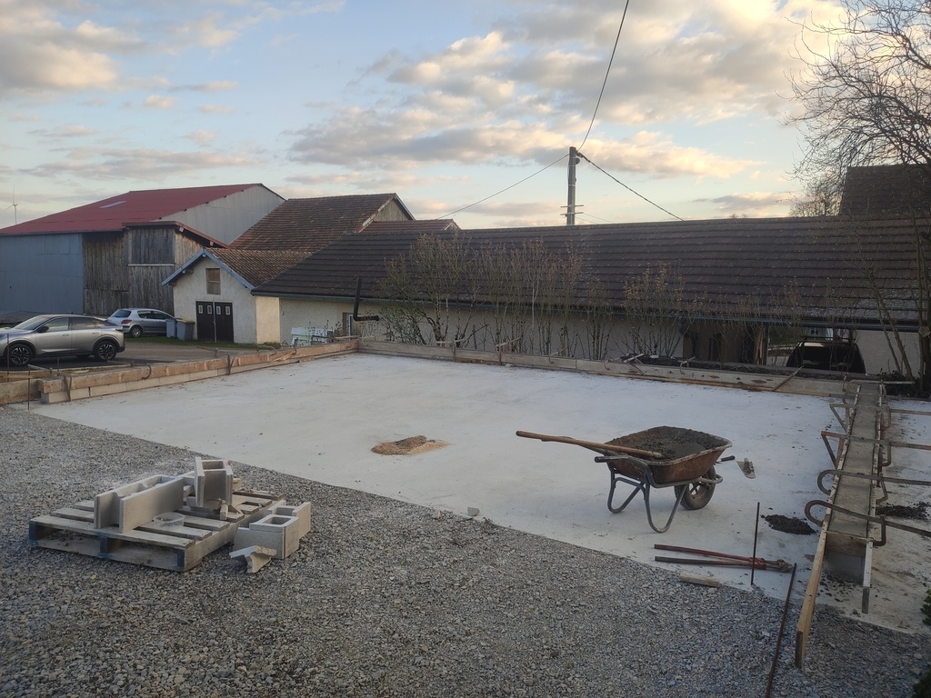 Une dalle et une relevée de maçonnerie (20 cm de haut) ont été fait contre les remontées d'eau.