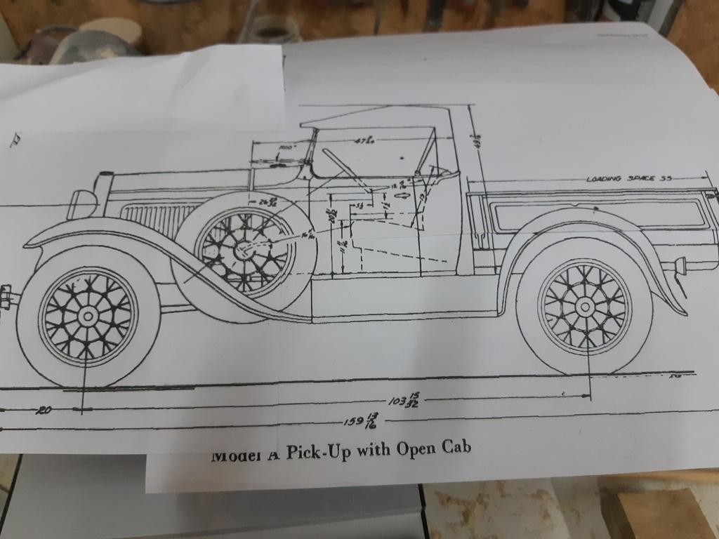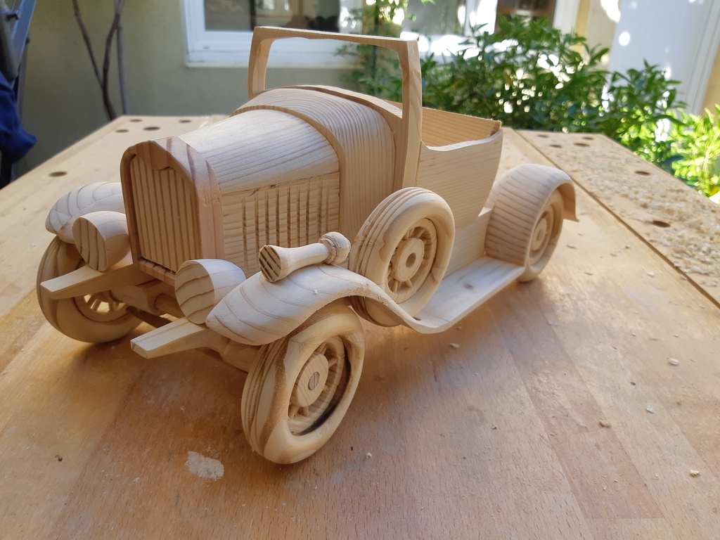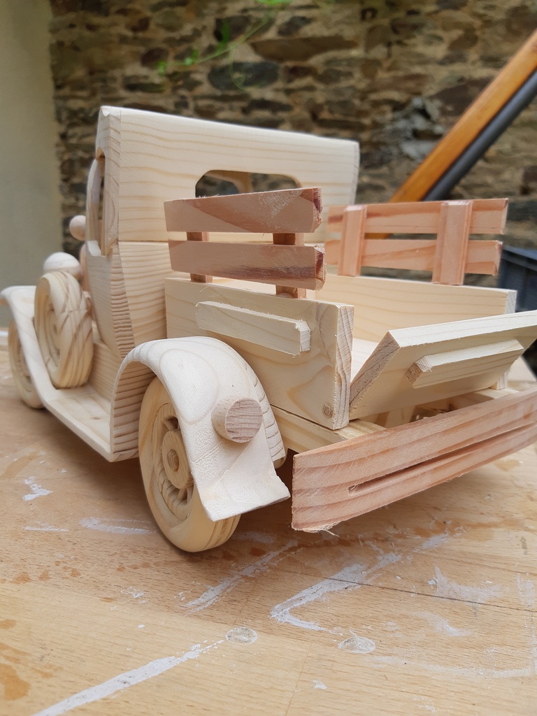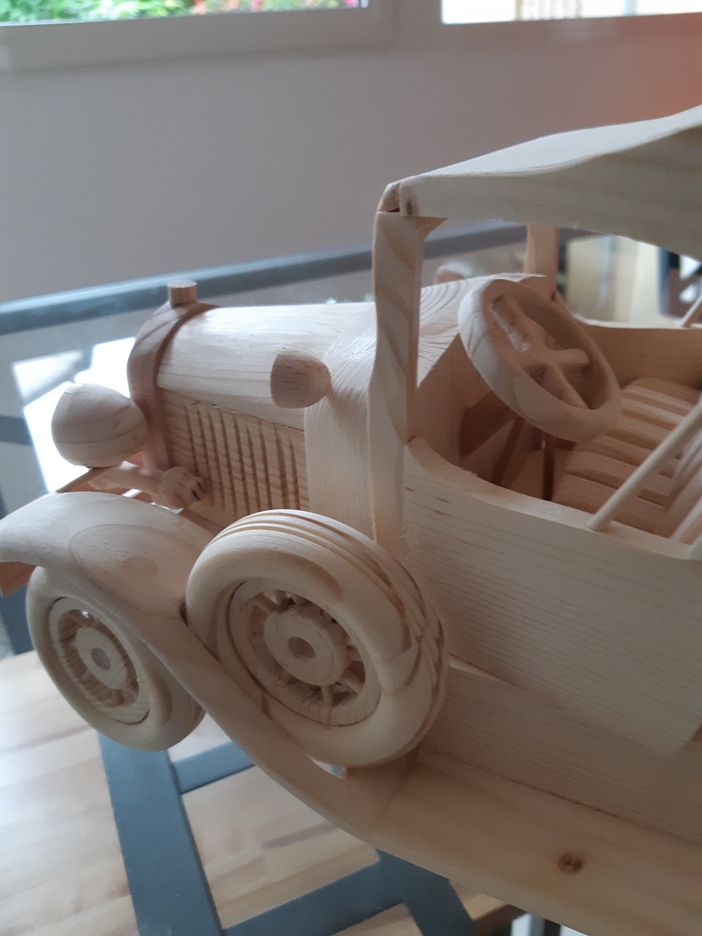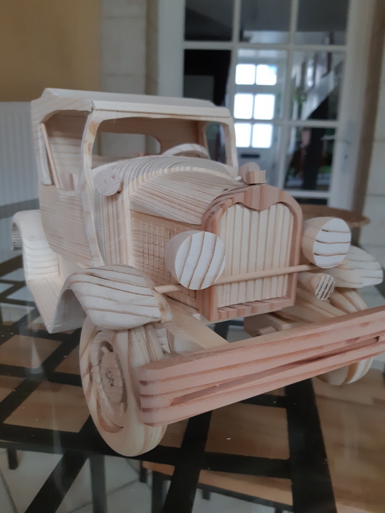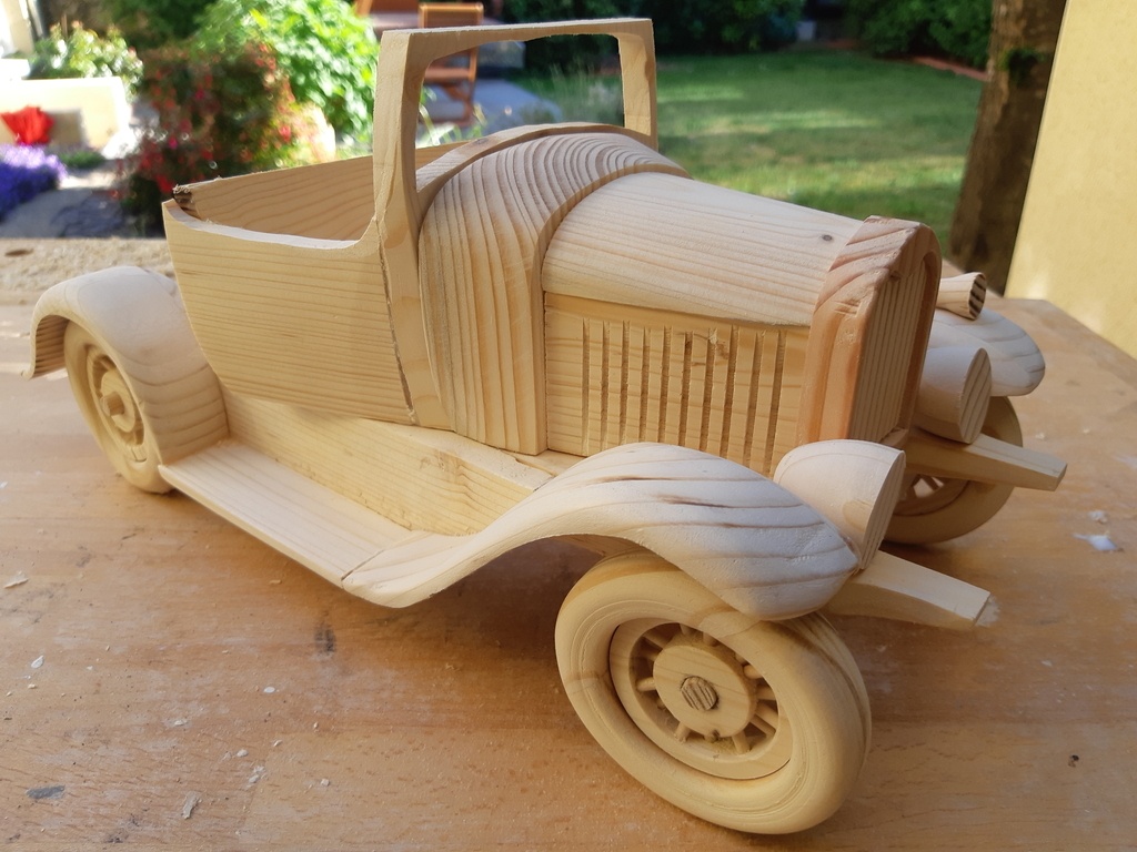 Ford A Pick up.Fabrication maison depuis un croquis entièrement en bois ,encore une fois (quand on passionner de bois ) roux rayons bois fait avec piques de brochettes