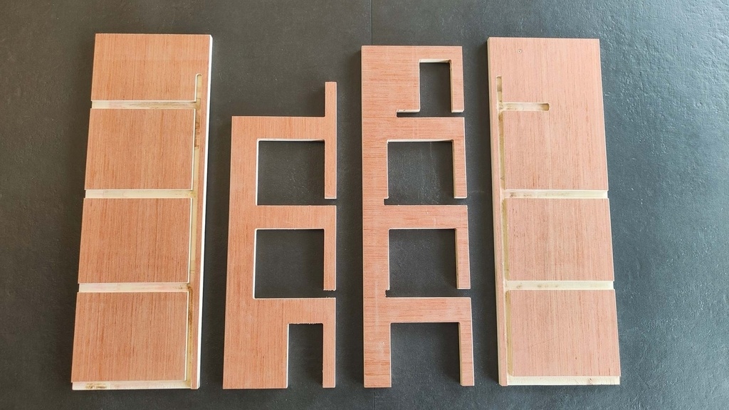 Reprise sous Fusion360 pour la fabrication des murs, refends, planchers façade arrière et escaliers. Création des fichiers ".cn".