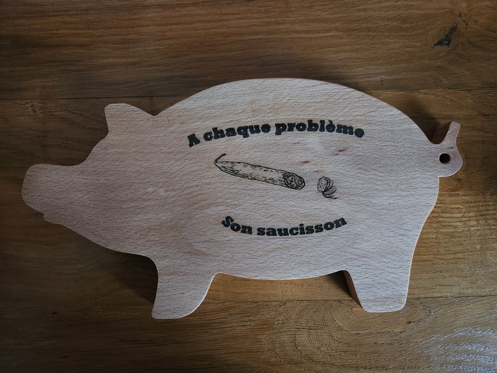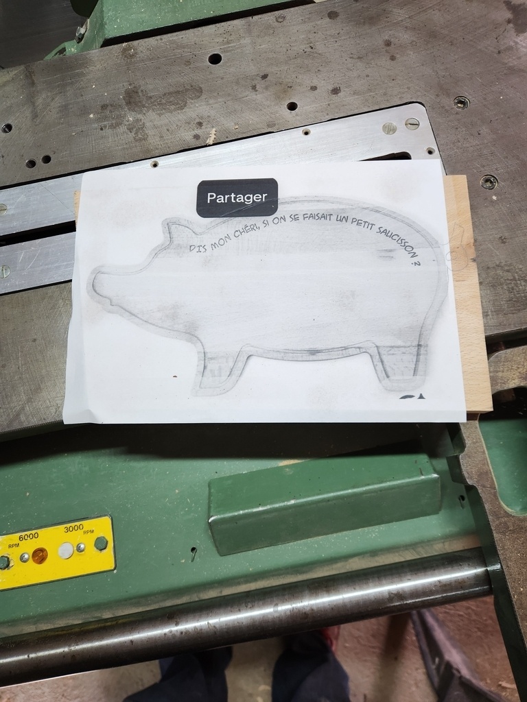 J'ai dessiné une queue trouée pour la fixation de la planche apéro.