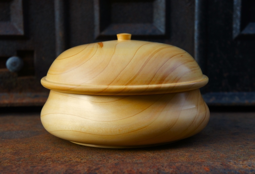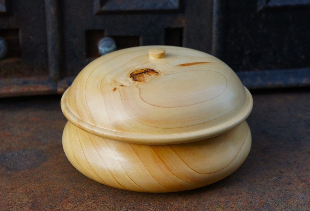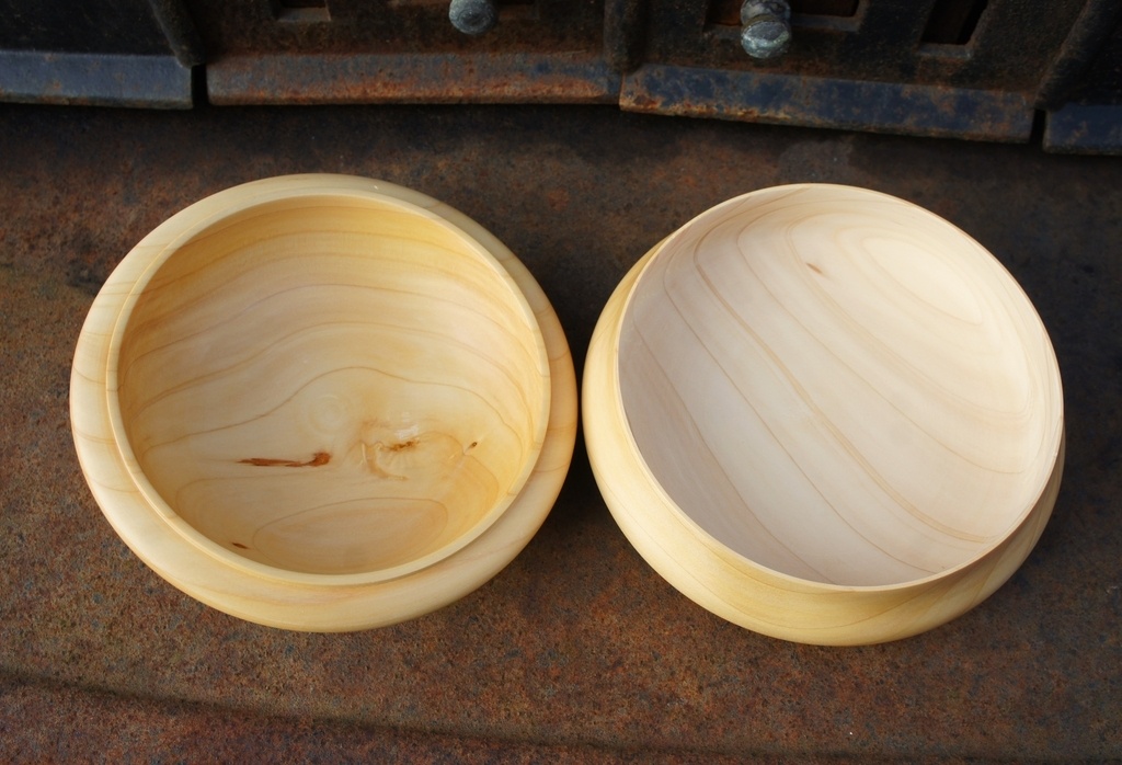 Bonjour, les boites que j'appelle madrier. Les pièces de bois sont prises dans des bouts de bastaings, ici de cyprès. Les motifs des résineux sont intéressants, que ce soit l'épicéa, le douglas et d'autres. Excellent exercice de tournage que de travailler les résineux, les coupes doivent être très propres avant ponçage.