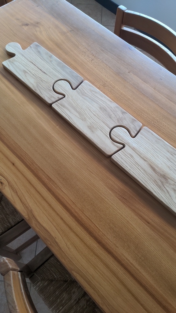 J'ai essayé d'éviter au maximum les chutes et donc de garder la continuité des fils du bois lorsque les planches sont mises ensemble pour garder l'esprit puzzle :)