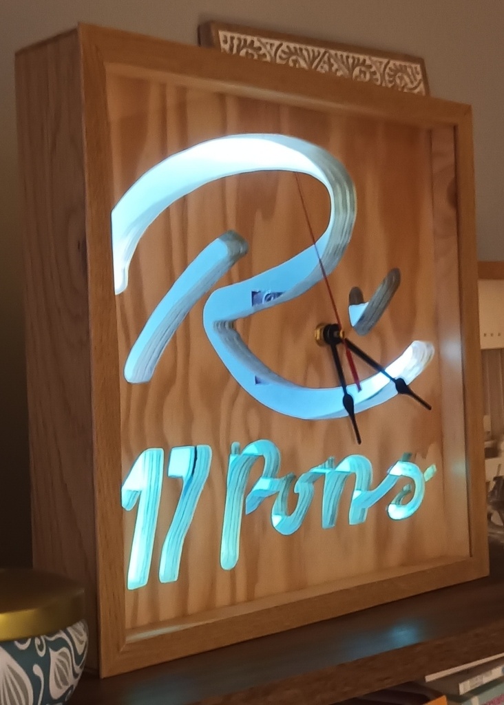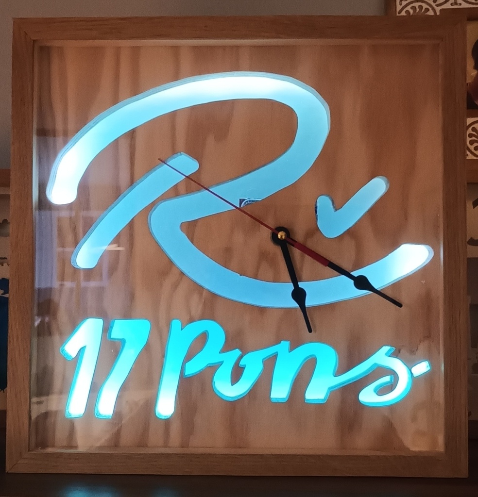 Horloge réalisée dans du contre-plaqué 20mm épaisseur, chantournage du logo et de la région.
