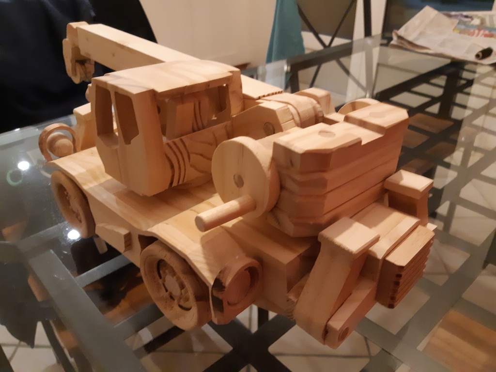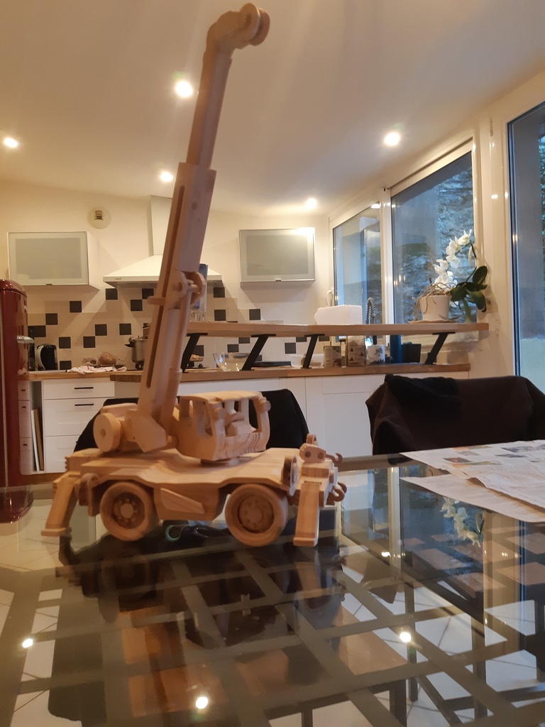 Réalisation grue telescopique pour compléter la collection de mes petits enfants . Personnalisation,d'apres des plans de Toys and Joys Bras télescopique fonctionnel cabine et verins amovibles, un objet de vitrine plus q'un jouet