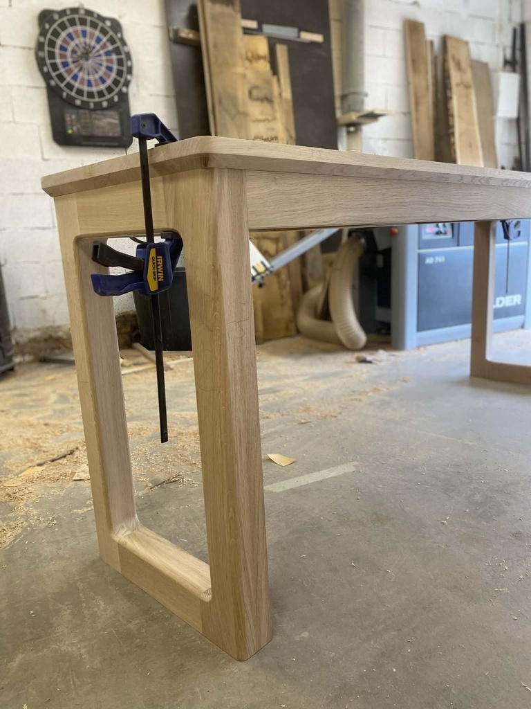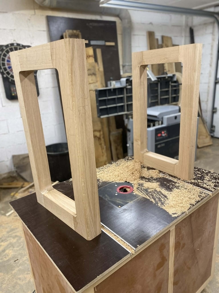 usinage du piétement à la défonceuse sous table avec gabarit et fraise à copier