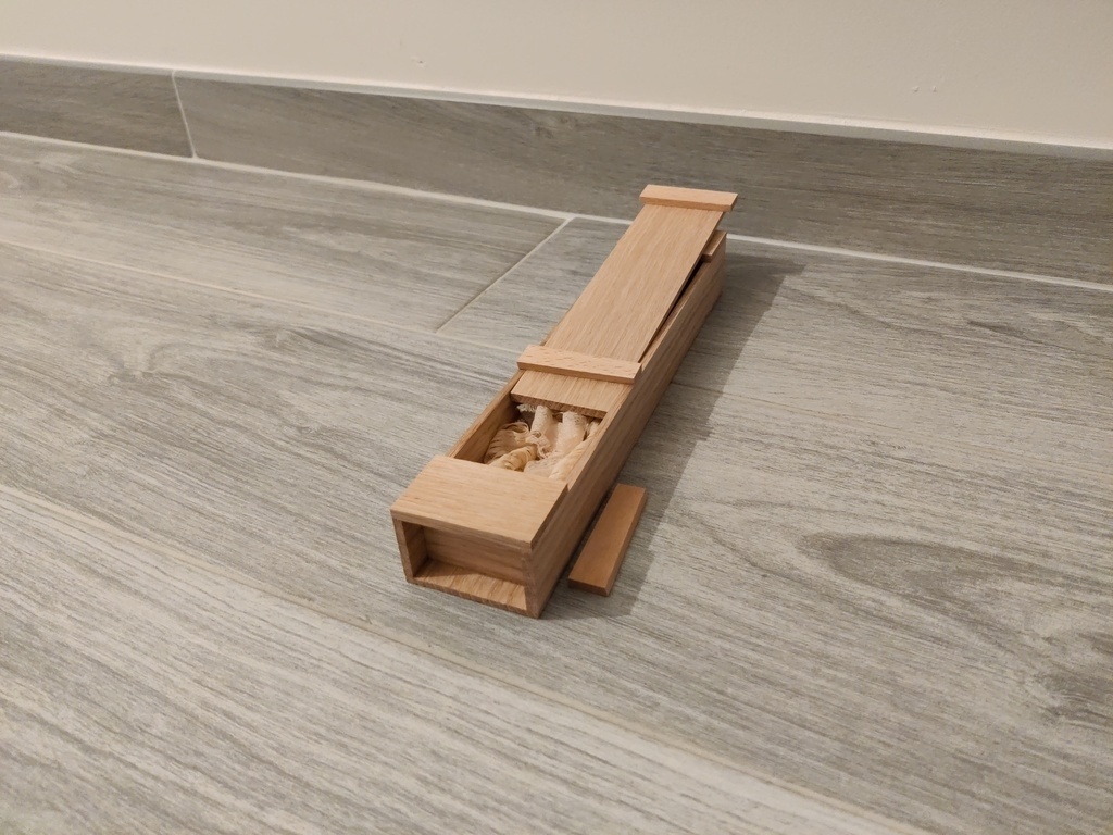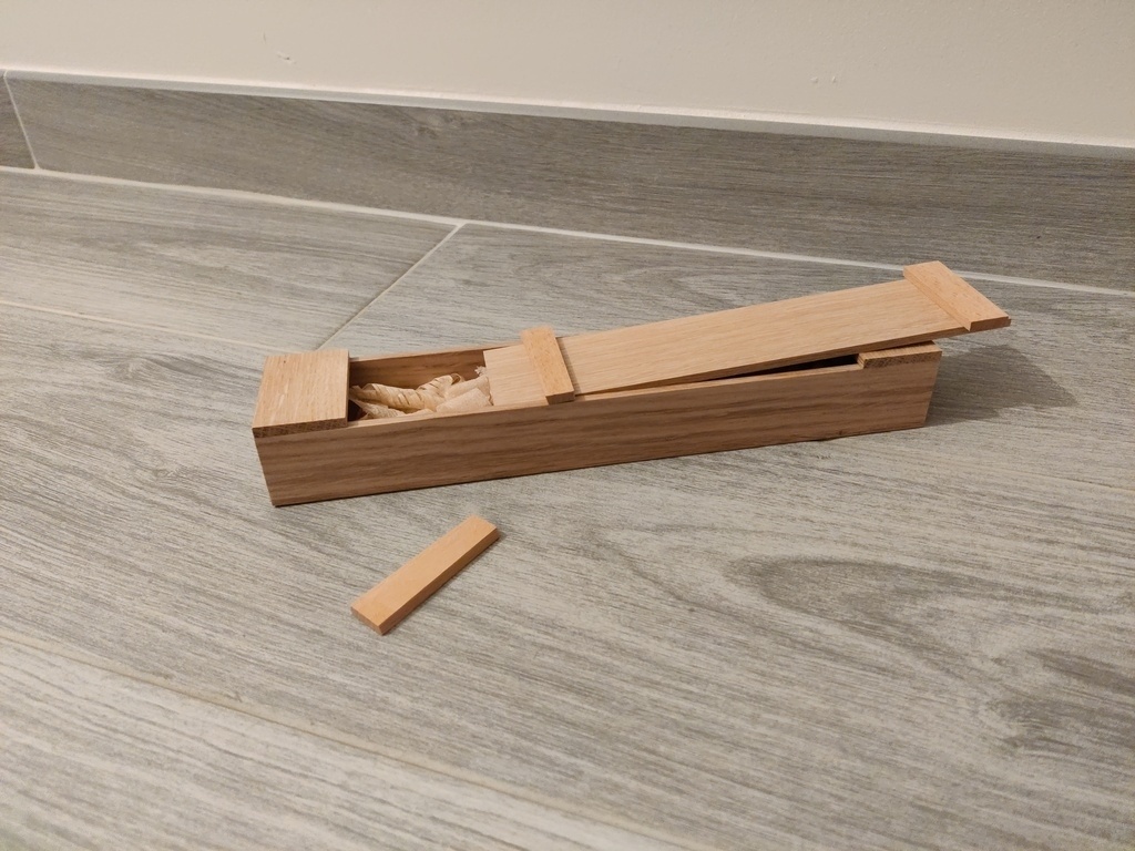 Elle utilise le principe de la boîte à outils japonaise, avec une clef qui bloque le couvercle.