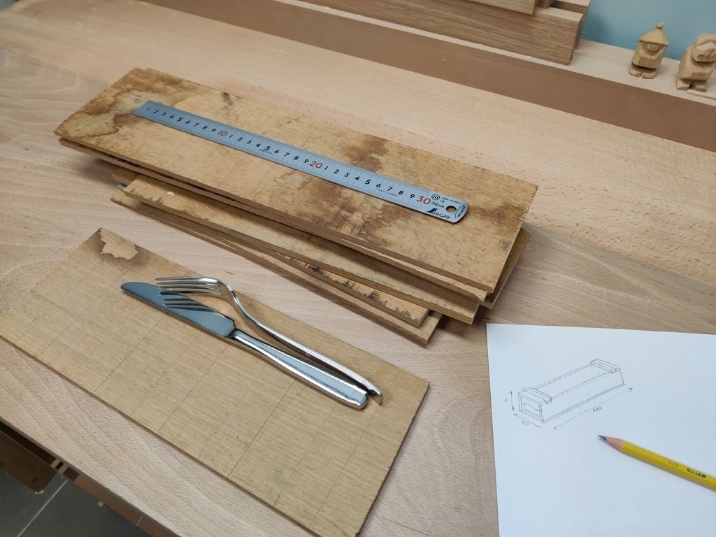 Pour un cadeau de Noël à un collègue, une boîte pour y ranger les couverts du déjeuner.
