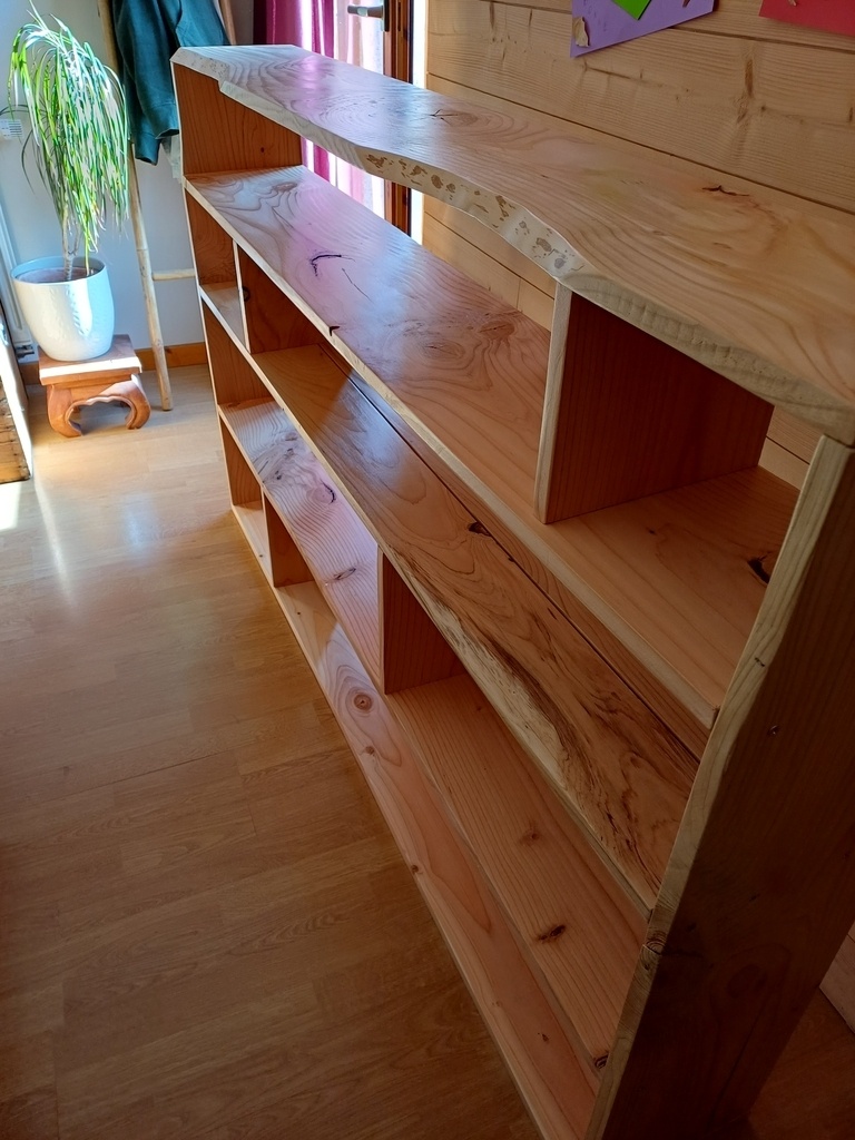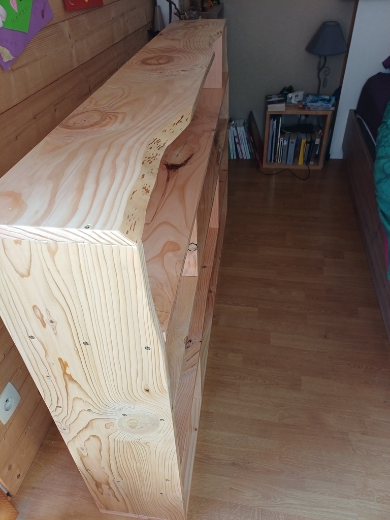 j'ai utilisé des planches que j'avais depuis également pas mal de temps. En essayant de conserver certains aspect de l'écorce.