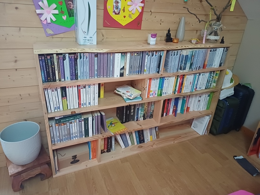 Après pas mal d'année, je me suis enfin lancé dans la création de cette bibliothèque sur mesure. L'enjeux étant de vider les cartons de livres qui trainaient depuis des années :D . (environ 300 livres)