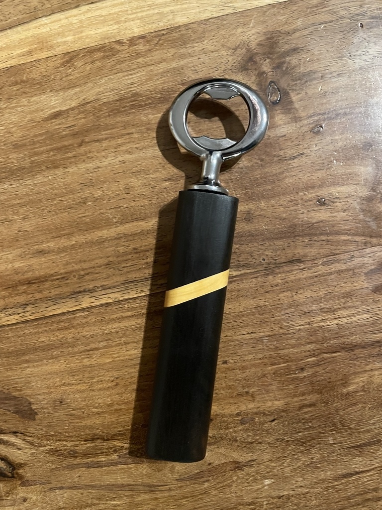 Décapsuleur en ziricote et un insert en buis car j'avais une fissure. Je suis déçu car le veinage du ziricote après avoir mis de l'huile n'est pas du tout mis en valeur. Peut-être devrais-je mettre de la cire pour bois ? Un conseil ?