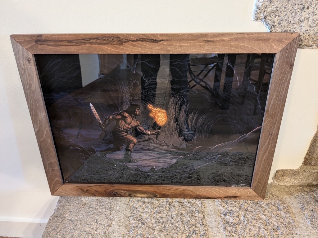 Trois cadres réalisés il y a quelques mois. Deux en noyer (bien habité ;)) et un en fruitier (essence exacte incertaine).