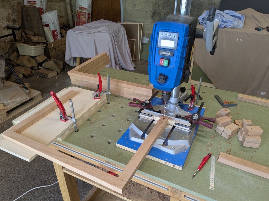 Bravo beau travail.Pour l alignement des tourillons , tu aurais pu utiliser un gabarit de perçage pour trouver le milieu