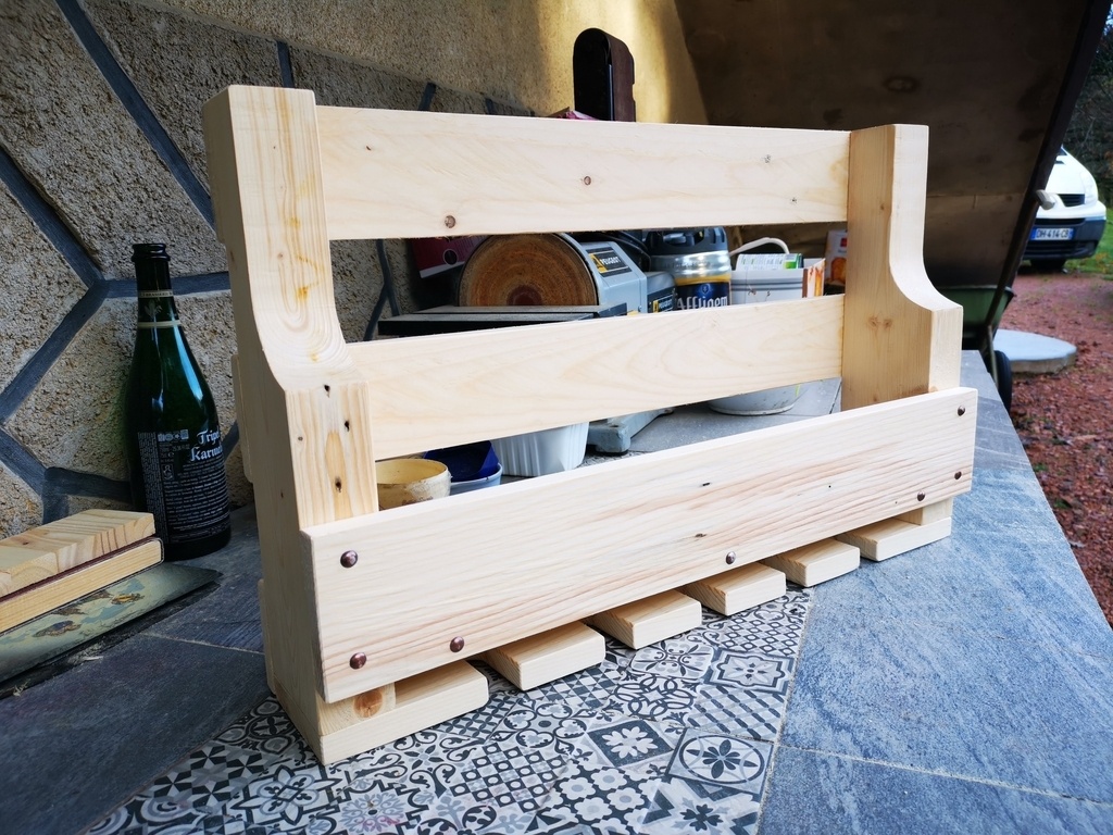 fabriquer en bois de palette raboter et poncer et avec des clous de tapissier pour cacher les clous de palette