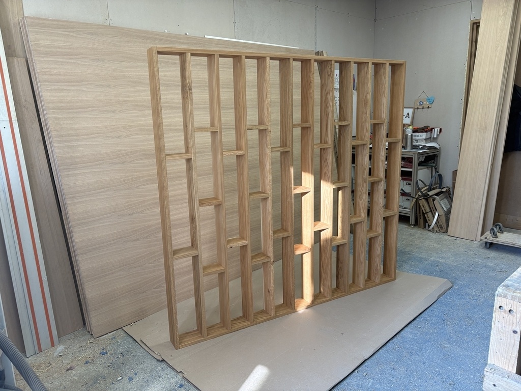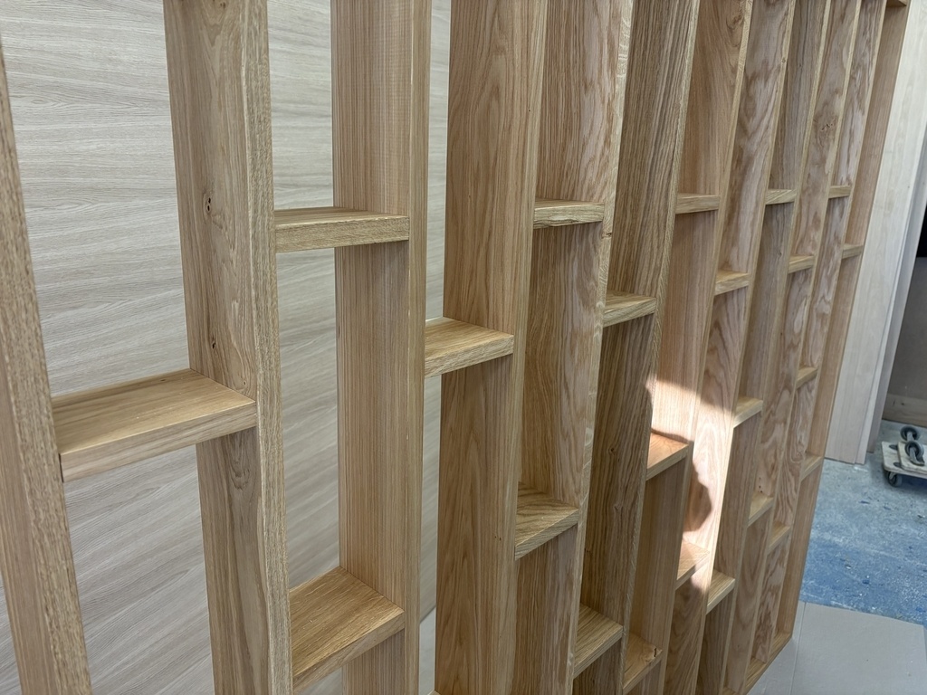 Voici la réalisation d’un claustra en chêne massif épaisseur 22mm et finition Rubio pure, n’hésitez pas à aller voir la vidéo de fabrication