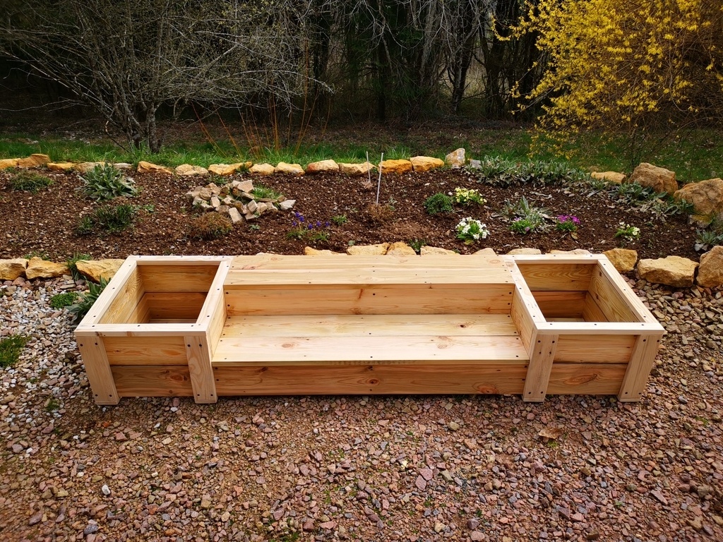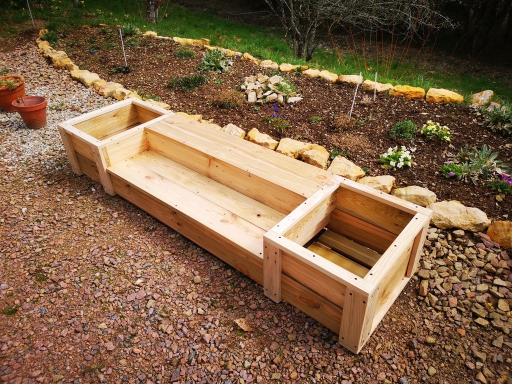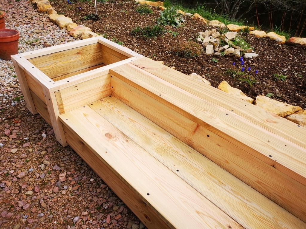 bonjour a tous voici une fabrication d'un escalier ou banc extérieur avec jardinières ou pots de fleurs sur les cotées , très pratique lorsque l'on a un muret un peu haut et que l'on ne veut pas faire un escalier .je les fabriquer pour ma fille