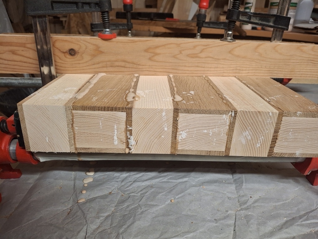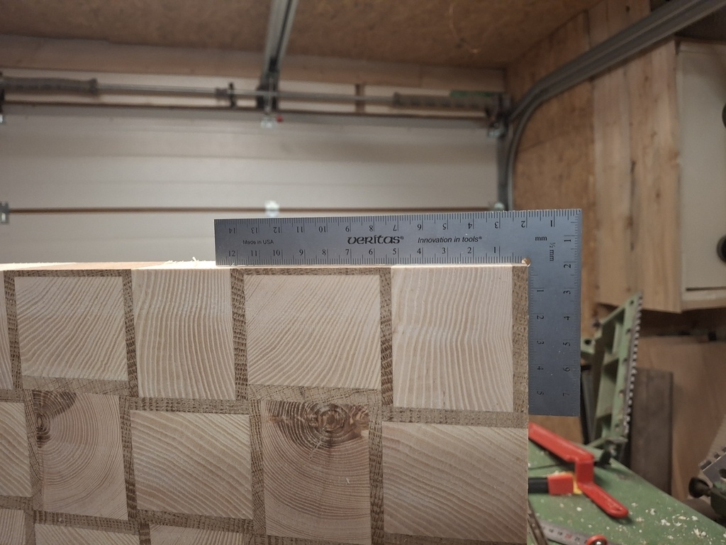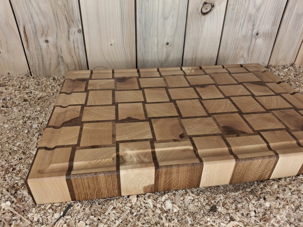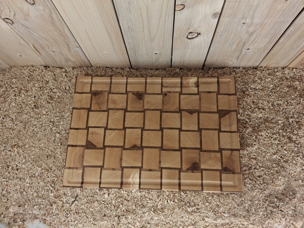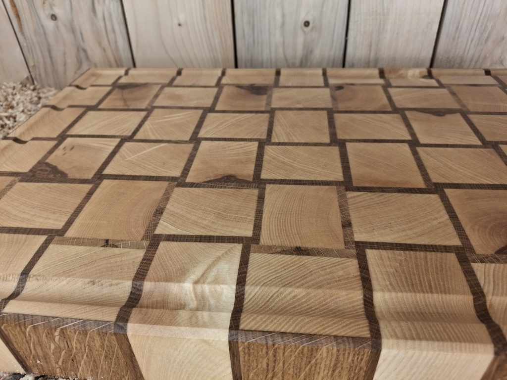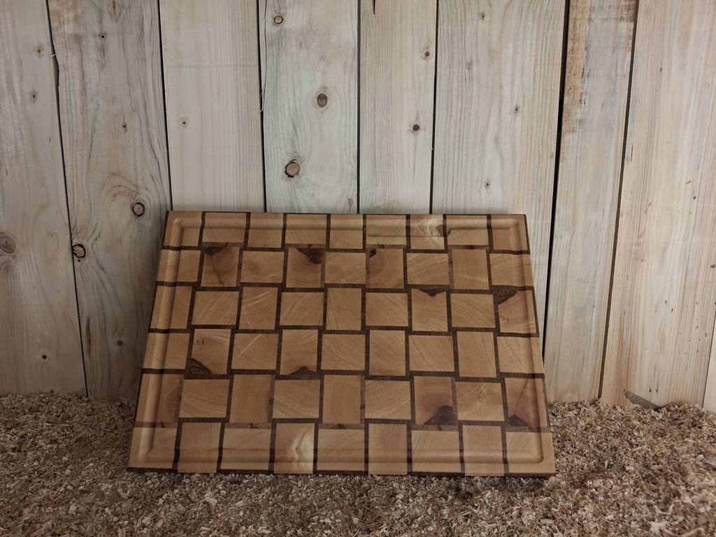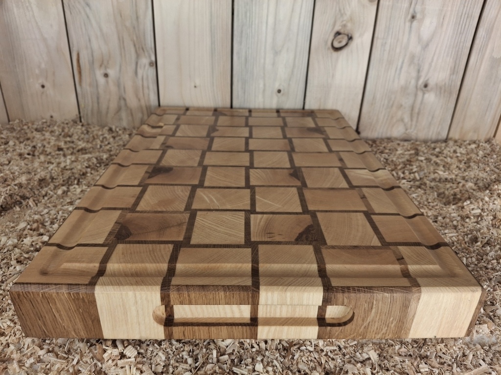 Planche a decouper en bois de bout en frene et chene. Dimensions 50x35 epaisseur 50mm