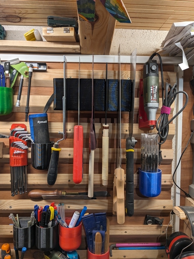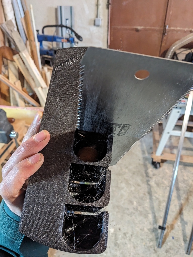 Version plastique du super support de scies de PascalLob , avec les mêmes dimensions de balle (baby foot diamètre 36mm). Très pratique et adapté aux scies égoïnes européennes aussi ! S'imprime sans support sur un plateau de diamètre 265mm minimum.