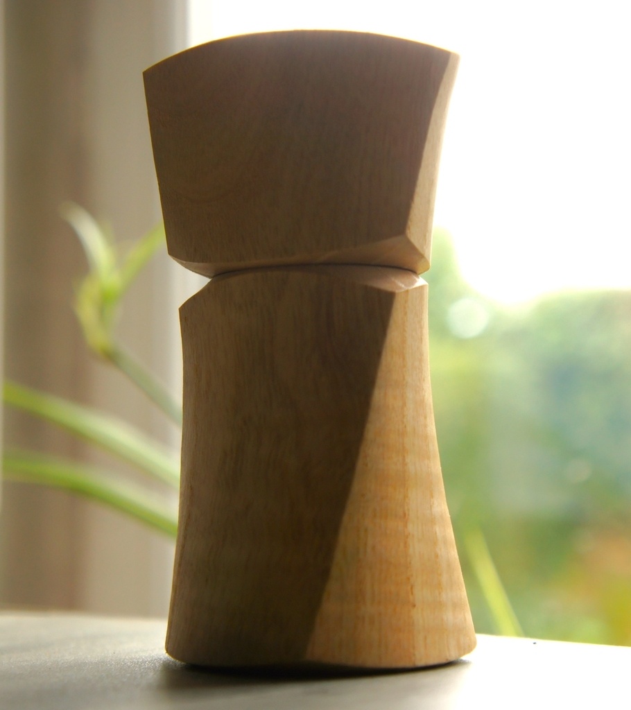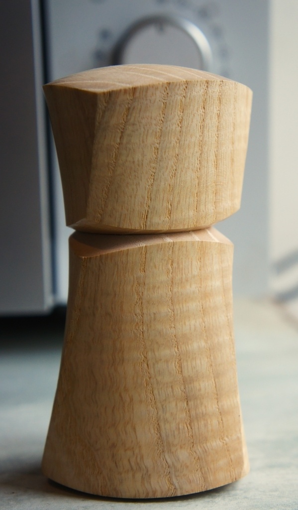 Bonjour, une petite boite torse tournée en frêne. Finition gomme laque. Une idée de poivrier...