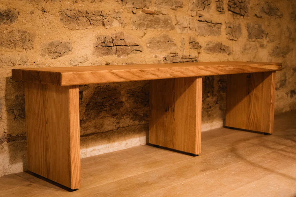 - Une belle banquette de 35cm de largeur par 1,5m, 45mm d'épaisseur, avec trois pieds pleins