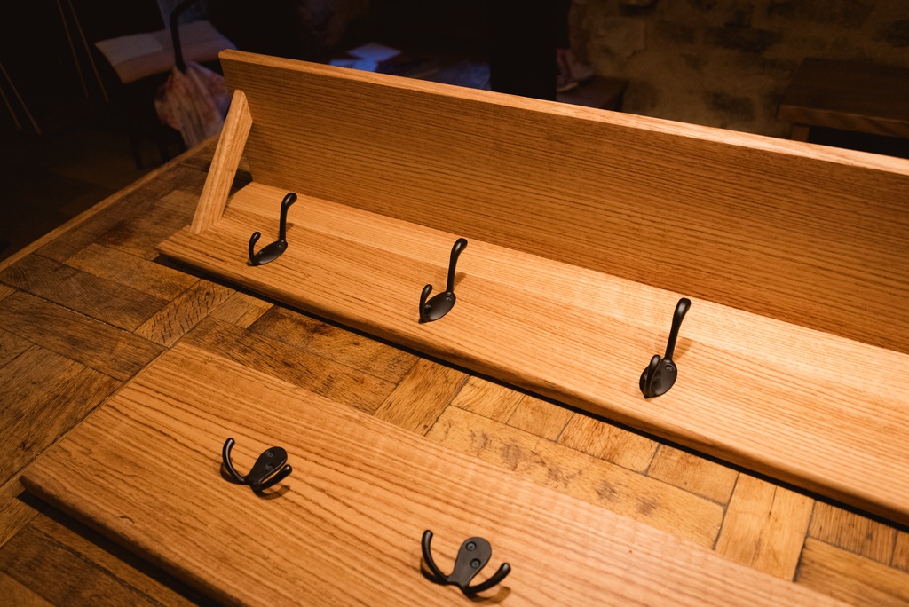 - Une porte manteau haut à 6 patères et casquette, à fixer au mur (1,5m de longueur)