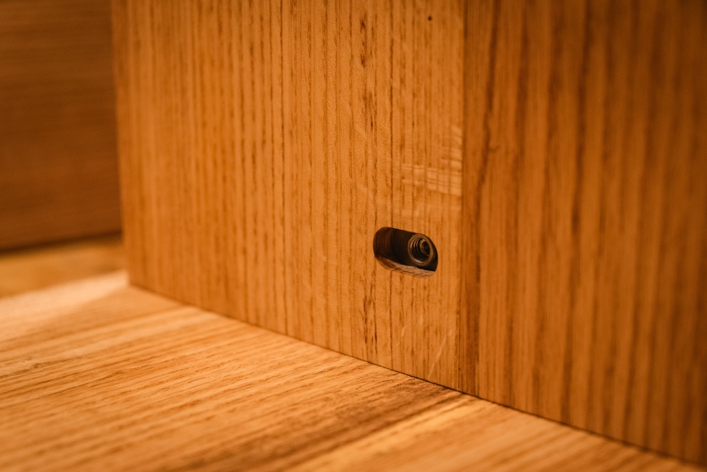Le chêne d'Amérique provient d'un bel arbre que j'ai scié en 2022 suite à l'élargissement d'un trottoir dans un village voisin. J'ai pu faire de belles planches épaisses en faisant un débit en quartier : je n'avais pas de grande largeur mais le fil est bien orienté, ça ne devrait pas trop bouger avec le temps/humidité.