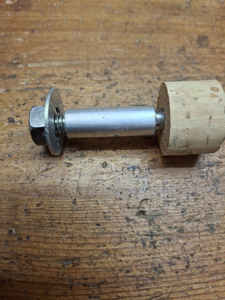 L'assemblage des plots en détail. La rondelle est du 10 mais comme elle appuie sur le disque en CTP cela fonctionne.