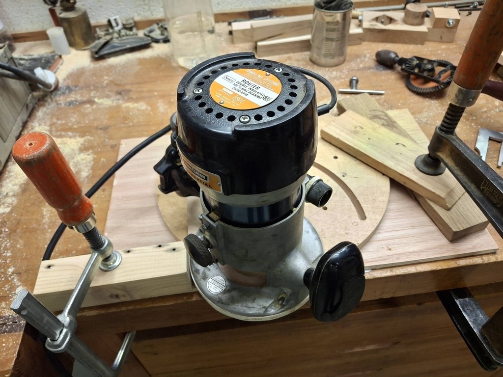 J'ai taillé les fentes avec une défonceuse qui a plus de 50 ans d’âge venu des US fonctionnant sur transfo 220/110. L'unique fraise fait 3/8" donc besoin de deux passages pour obtenir une fente de 10,5, que du fun.