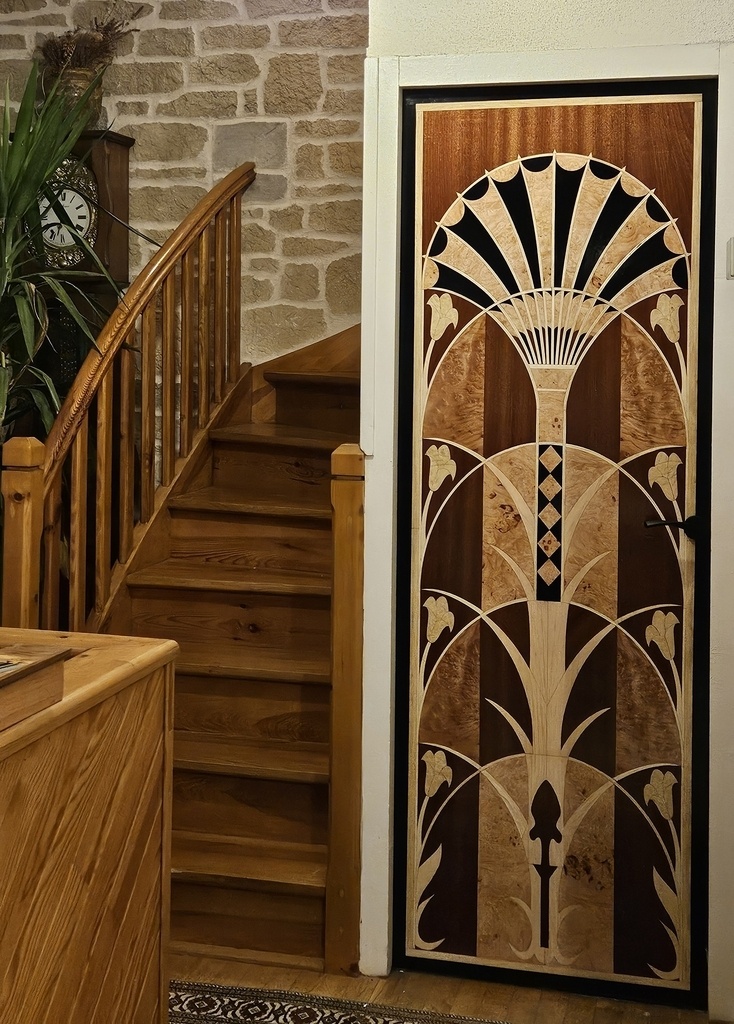 Freesiac est moi qui a realisé ses portes chez Viollet en 95 , j en avait fait une de plus qui m a servi comme panneau arrière de vitrine . Les panneaux originaux sont les portes d ascenseur du Chrysler Building qui est Art deco pas Art nouveau.