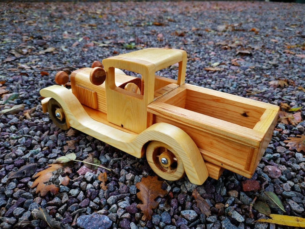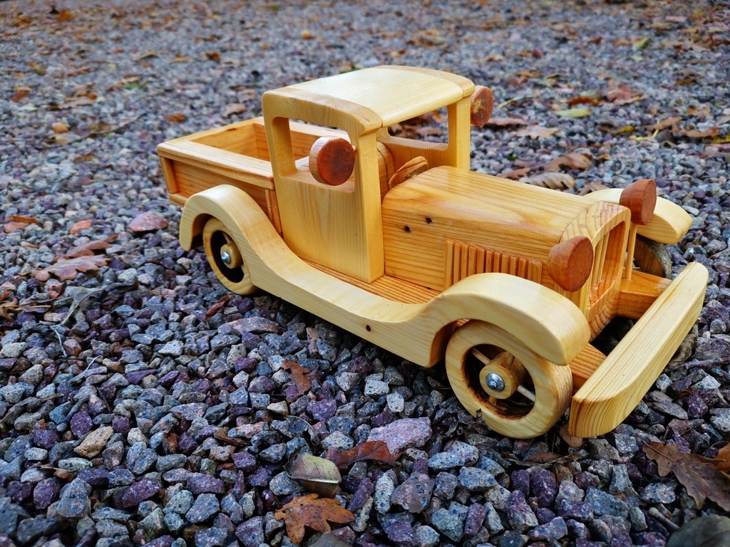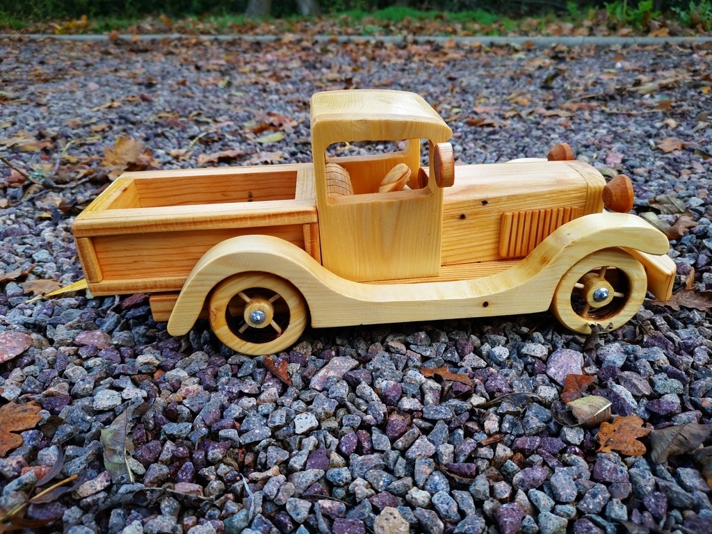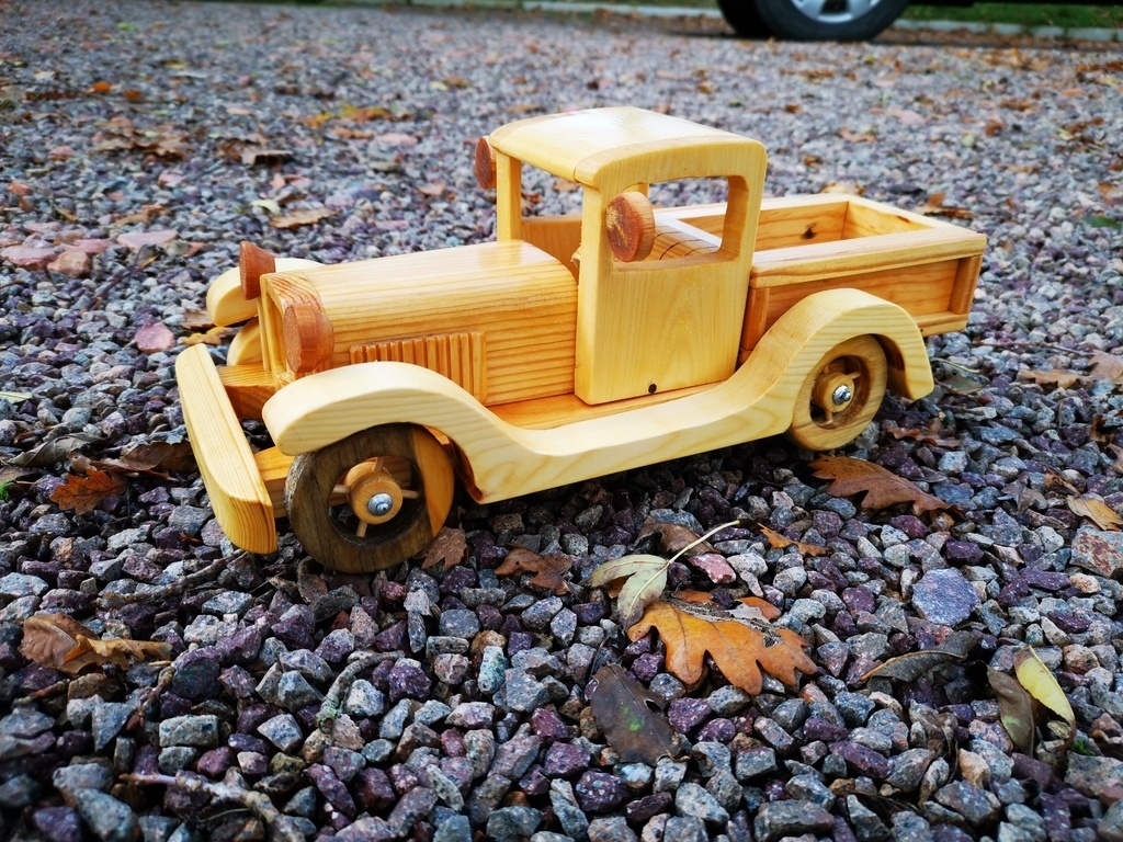 bonjour , voici un pickup Ford en bois de palette dimensions : 35 x 13 x 12 cm