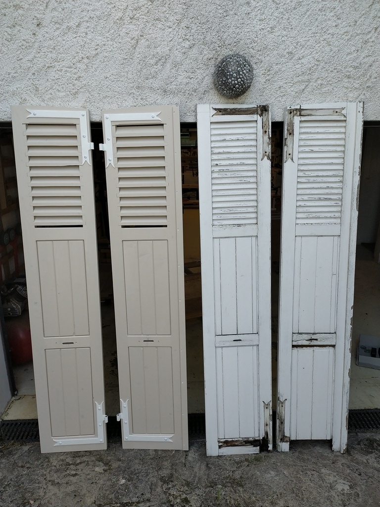 Réfection à neuf de trois paires de volets à persiennes et panneaux.