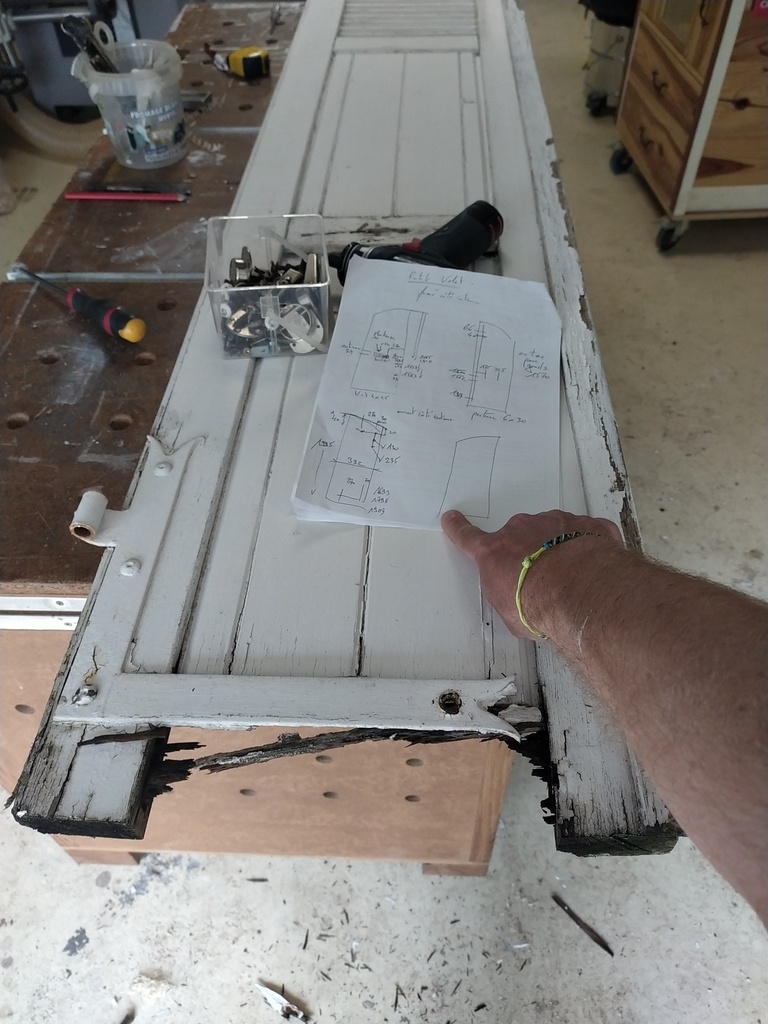 Récupération de la quincaillerie, décapage et remise en peinture.