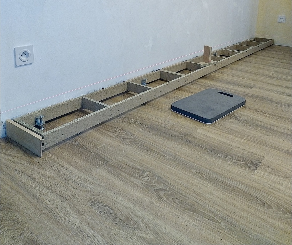 J'ai après avoir posé la grande partie BD fabriqué en supplément une plinthe pour dissimuler fils réseau, Hifi et éléc.